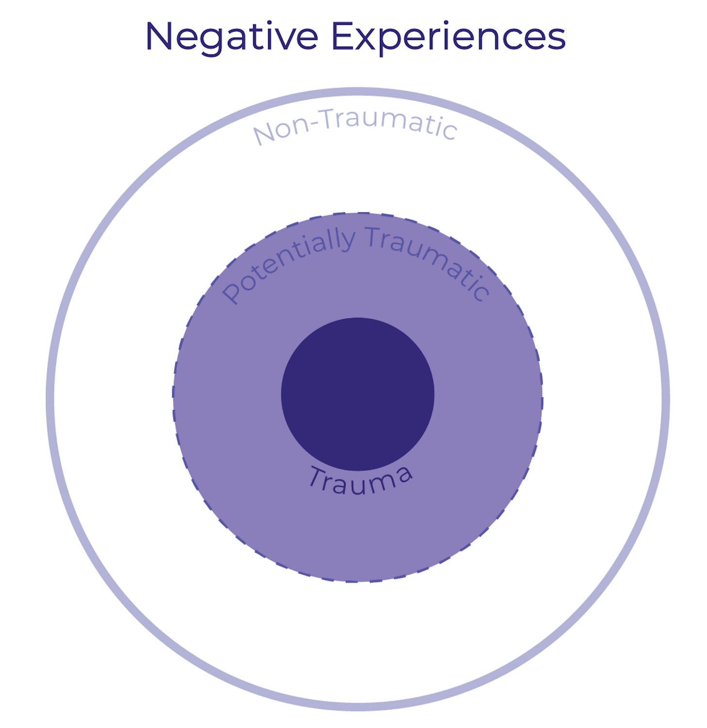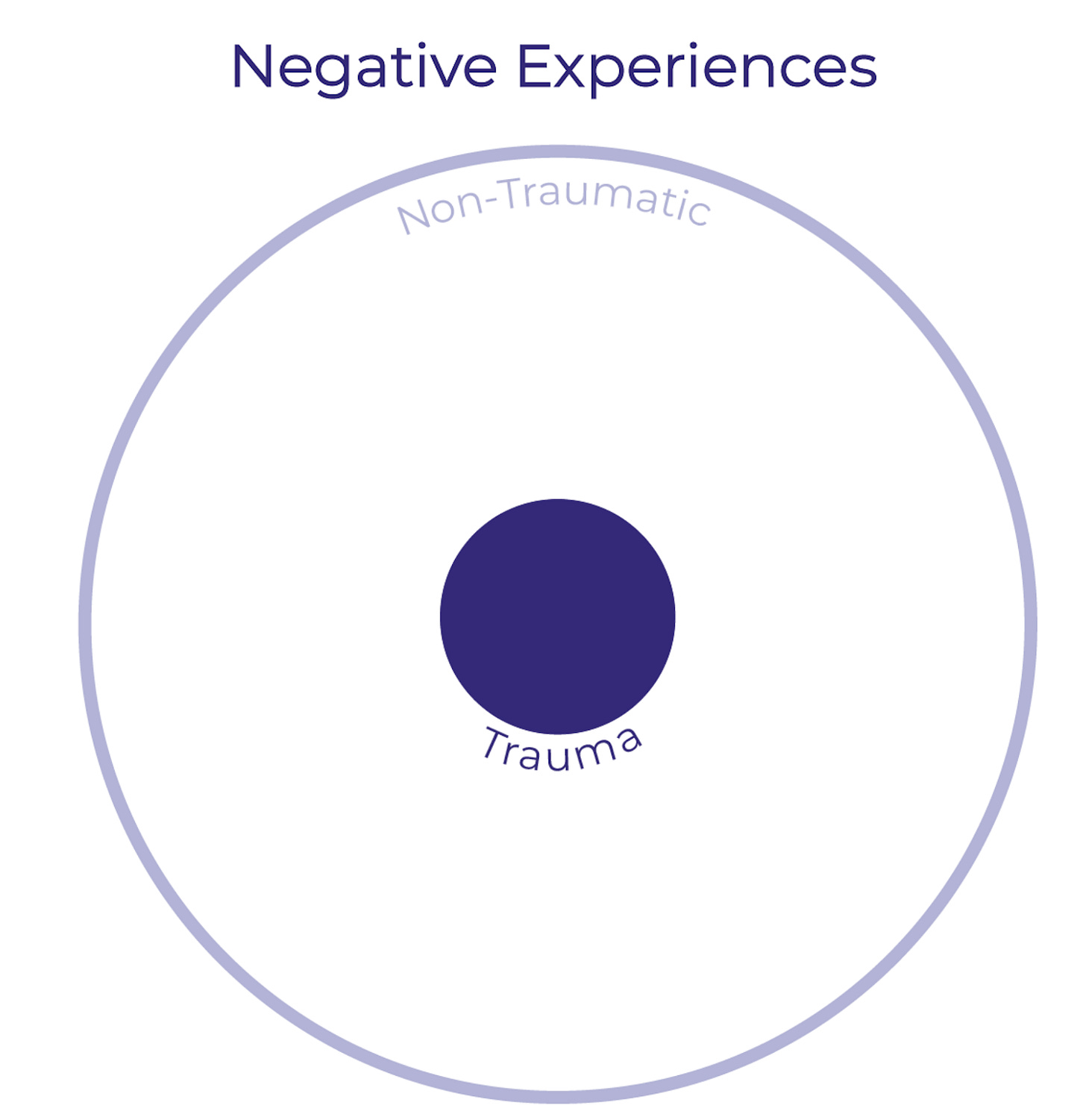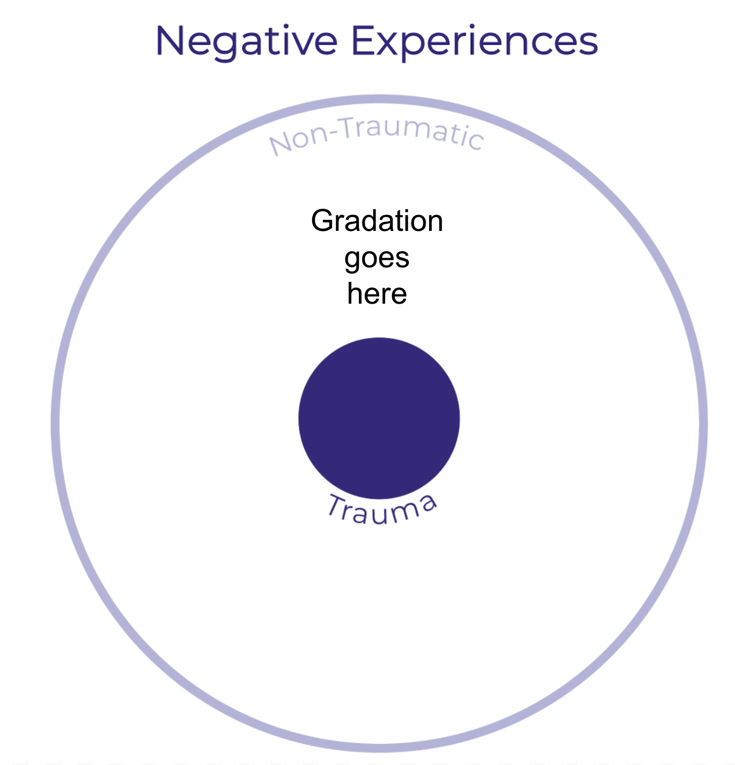 Now, imagine that at the center of that space are the traumatic negative experiences, the ones so bad they almost certainly cause lasting trauma: things like sexual abuse spanning years, being kidnapped by strangers, or accidentally backing up over your child and killing them.