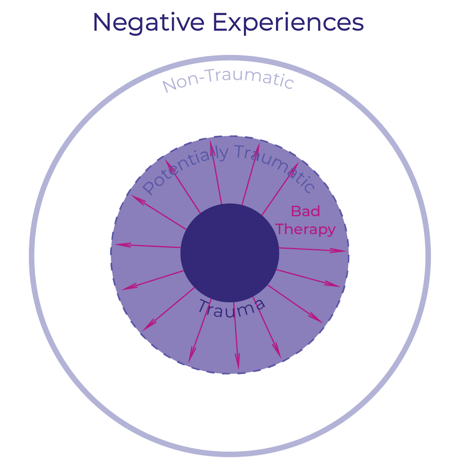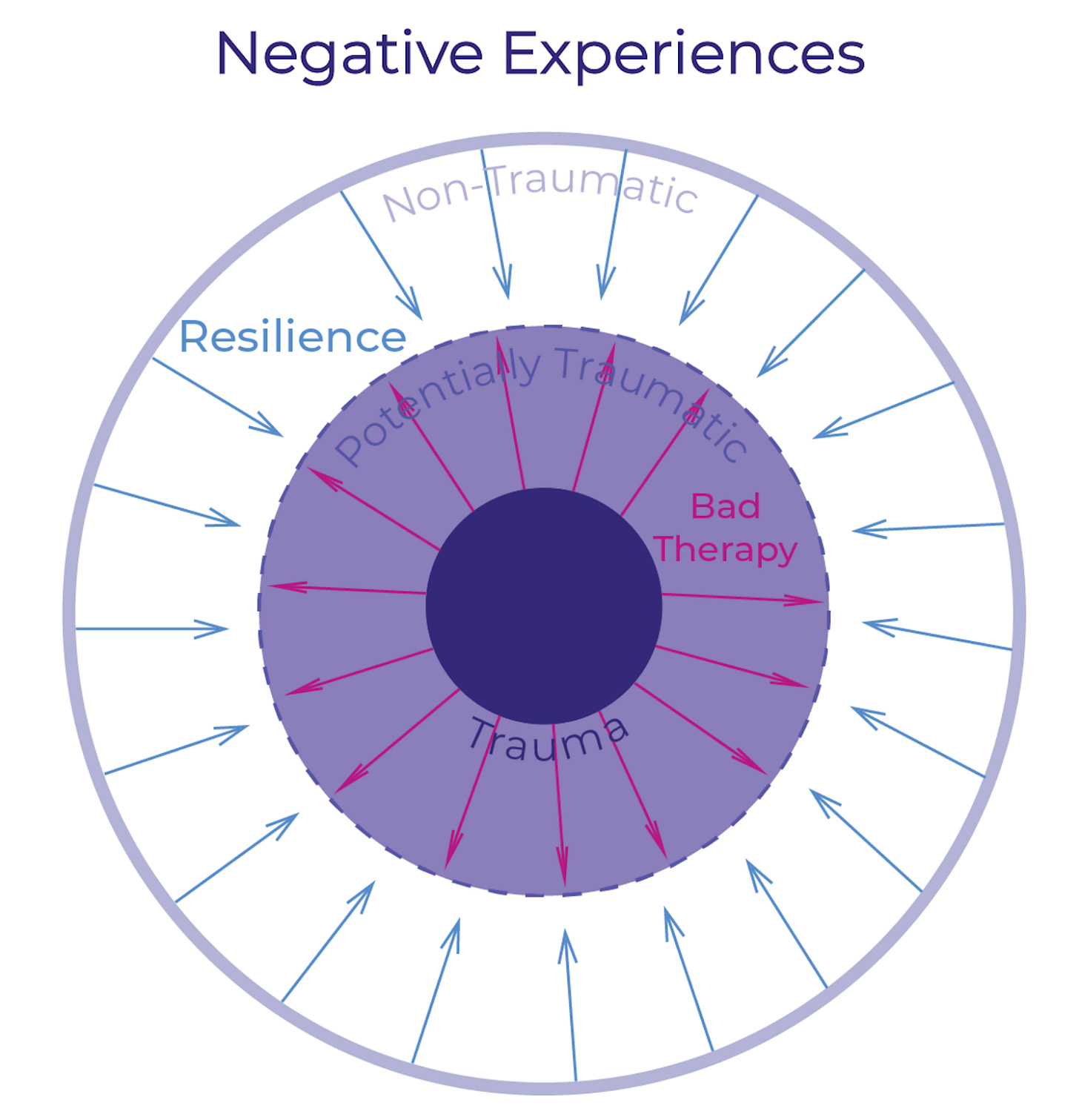 This zone is composed of negative experiences which might be traumatic depending on the person, their previous experiences, and—most importantly for our purposes—how the negative experience is dealt with or treated. This is where the majority of our focus is going to be, and though she doesn’t lay it out as specifically as I have, this is the realm Shrier is concerned about. She provides numerous examples of situations and experiences that only become traumatic through misguided interventions. She doesn’t deny that some negative experiences definitely cause trauma, and that this trauma benefits from competent therapy.8 Her book isn’t against all therapy; it’s against bad therapy, and the way we recognize it as bad is that rather than treating actual trauma it expands the definition and scope of trauma such that a greater number of negative experiences go from being potentially traumatic to definitely traumatic: