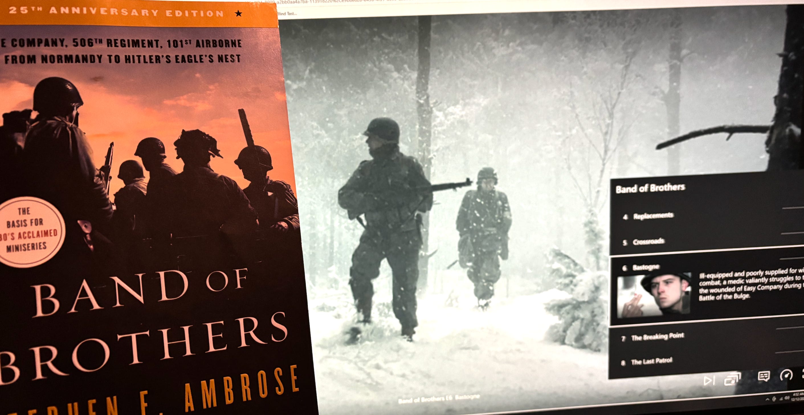 Allow me to make one final plug for the reading and watching Band of Brothers at the same time. Perhaps you’ve read the book, but not watched the miniseries, or more likely you’ve watched the miniseries, but not read the book. Doing both is more than the sum of its parts.