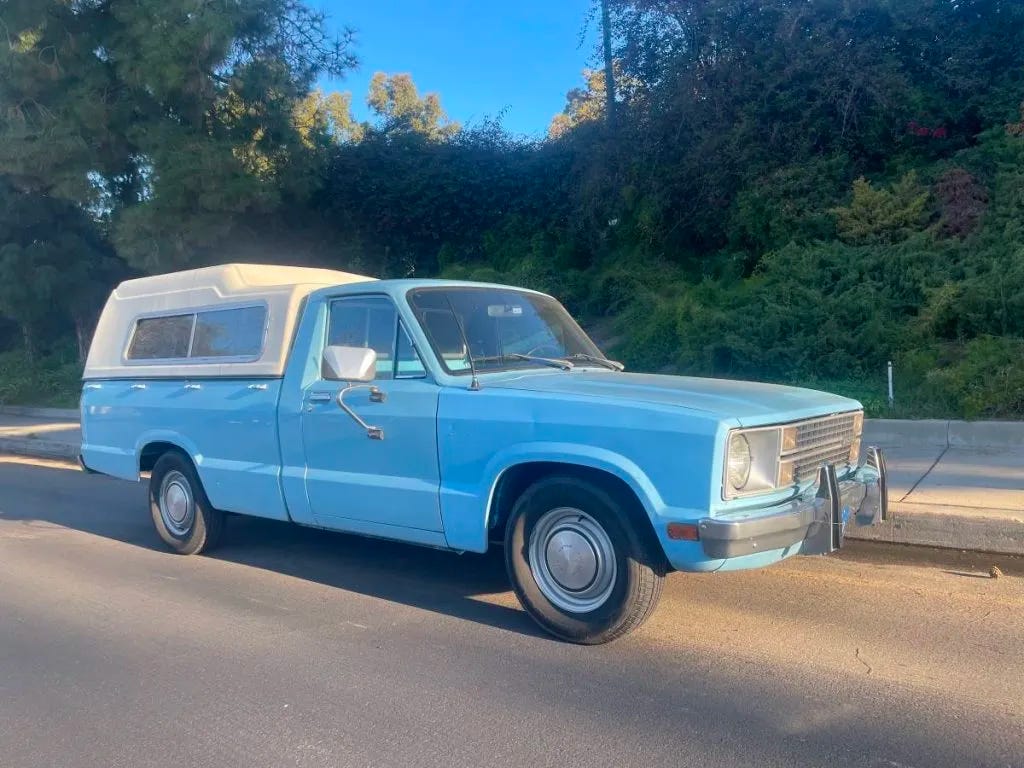 A Ford Courier similar to ours: Same color, but the shell was more basic, and ours had lines of rust just in front of the seam between the doors and the side panels. This allowed the side panels to detach almost like wings when I rear-ended someone at high speed, totaling the car a few weeks before my senior year. I was ogling a jogger rather than paying attention to the road.
