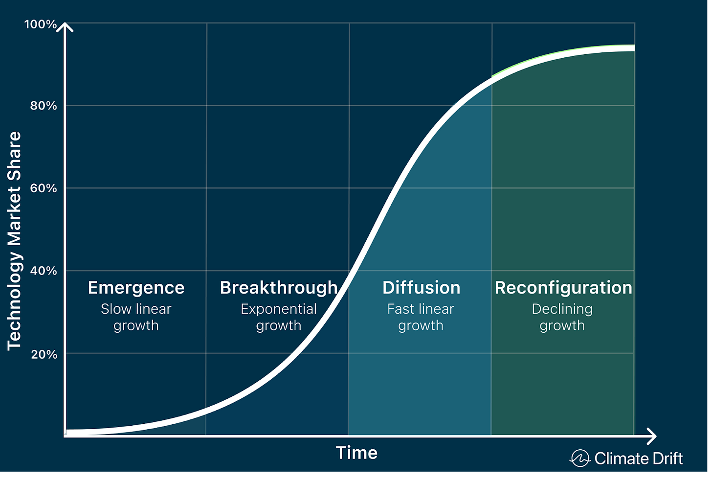 Perhaps it's not how fast technology moves, but where it's impact is felt? Also S-curves...