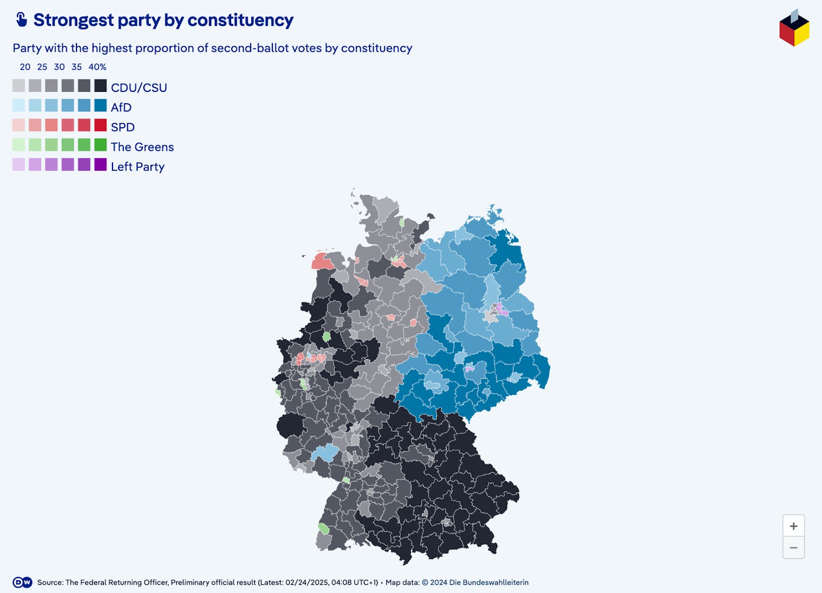 2- Alternatively, maybe this is no more alarming than the existence of red states and blue states in the US. The former East Germany is just a red state and the rest of Germany is just a blue state.